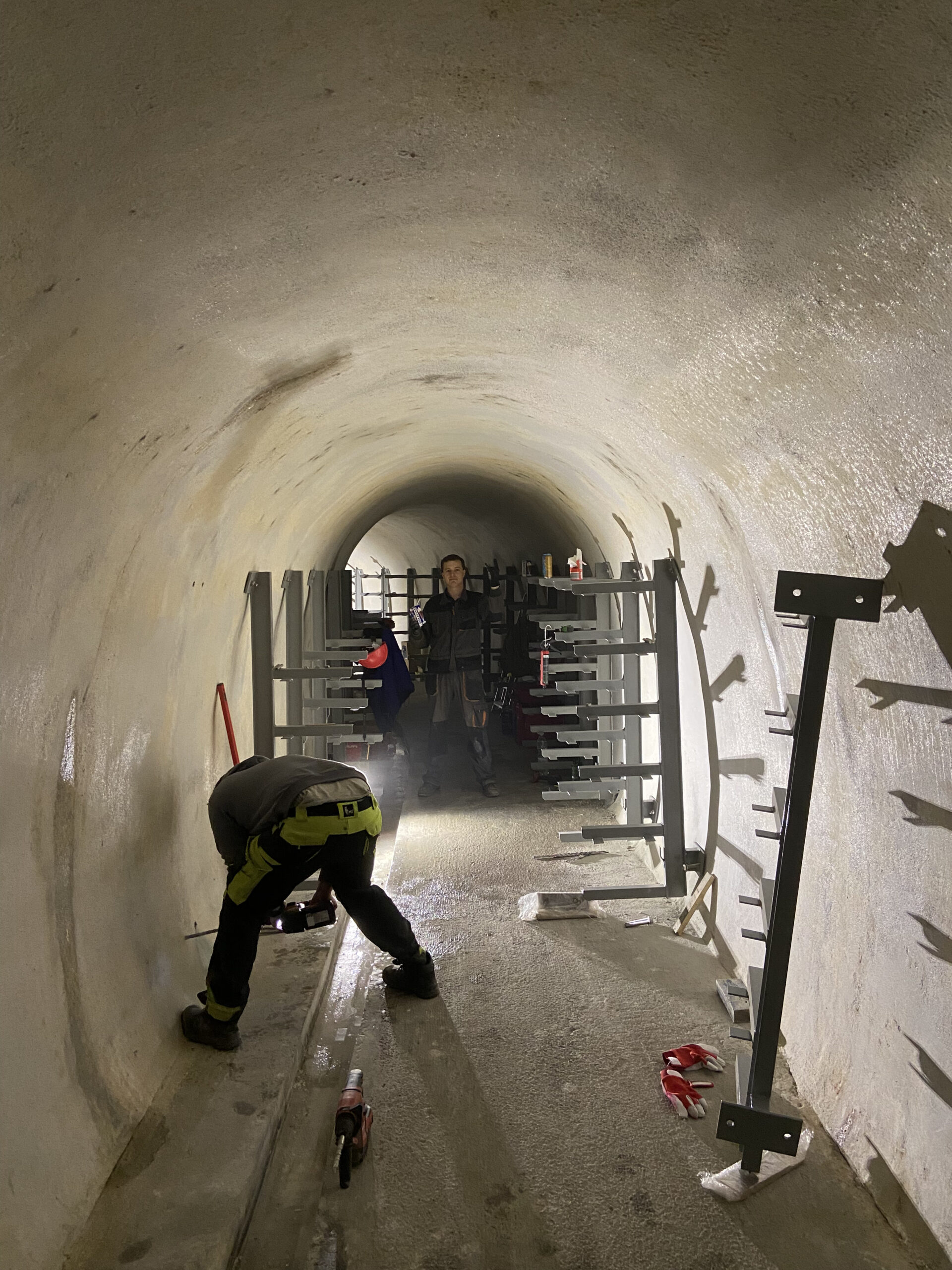 Montáž výložníků na kabely pro Pražskou energetiku.